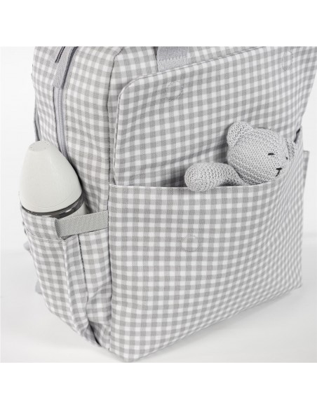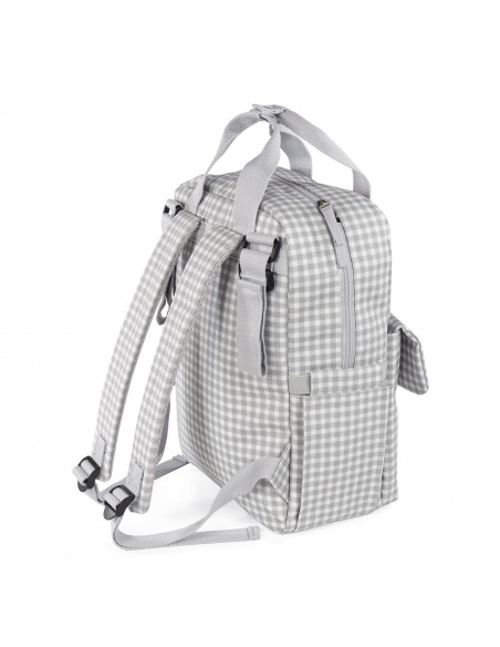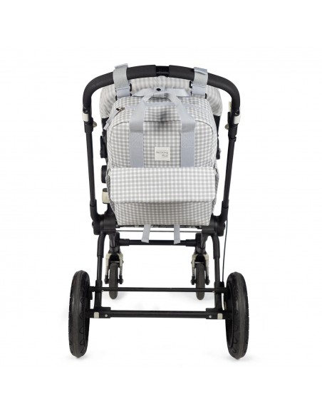 Una bolsa canastilla y mochila al mismo tiempo, muy moderna y urbana, ideal para llevar tus cosas y las de tu bebé, con mucho estilo, a todos sus paseos. La bolsa I love Vichy gris para silla de paseo es un modelo multifunción muy ligero, resistente y de gran capacidad para llevar todo lo necesario en el paseo del bebe. Su esquema ofrece múltiples bolsillos exteriores e interiores para poder tener todo ordenado y a mano. Tiene bolsillos para guardar los biberones y mantenerlos seguros.