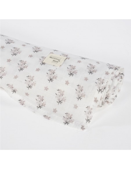La muselina Botton estampada con flores en tonos neutros de Walking Mum es el accesorio imprescindible para el cuidado del bebé. Confeccionada con una combinación de 70% bambú y 30% algodón, ofrece una textura ultrasuave, transpirable y delicada con la piel del recién nacido. Su tamaño de 120×120 cm la hace ideal para múltiples usos: arrullo, mantita ligera, protector para el carrito, cubierta de lactancia o cambiador improvisado. Gracias a su tejido transpirable.