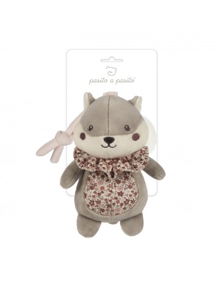 El musical Cherry Flores de Pasito a Pasito es el accesorio ideal para relajar y calmar a tu bebé. Diseñado con una adorable ardilla de 20 cm, su suave melodía crea un ambiente de tranquilidad y confort. Perfecto para ayudar a dormir al bebé. Incluye un práctico lazo para sujetarlo en la cuna, el cochecito o la silla de paseo. Confeccionado en velour, ideal para el tacto delicado del bebé. Sin piezas pequeñas ni elementos peligrosos, apto para bebés desde recién nacidos.