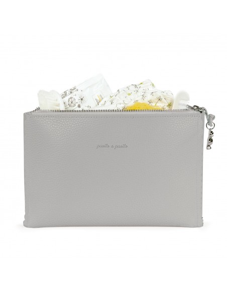 El neceser de bebé Icon Smoke es un bolso pequeño especialmente pensado para llevar todos los productos de aseo de nuestro bebé al salir de casa. Es un modelo único con mucho estilo para adecuarse a lo que necesitas. Está elaborado en resistente y suave polipiel y com una forma para acomodar fácilmente en el bolso canastilla a un lado. Es un diseño bonito, simple y cómodo que ofrece un espacio pequeño pero preciso para llevar justo lo que necesitas para la higiene de tu bebé, peine, lociones,...