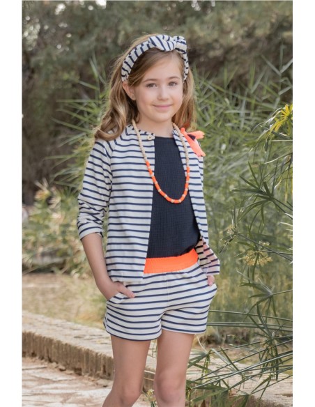 -63% NIÑA 2 A 9 AÑOS SHORTS BAHAMAS PILAR BATANERO 424401 15,00 € 41,00 € 14 BLANCO Añadir al carrito Bermuda algodón elástico fondo blanco roto y raya marino con elástico naranja flúor en la cintura. Añadir al carrito