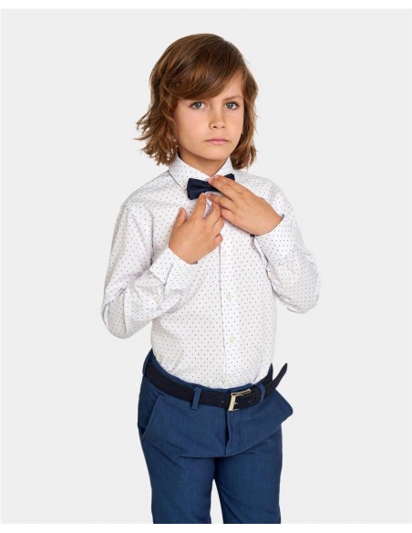 -63% NIÑO 2 A 9 AÑOS CAMISA MANGA LARGA CON PAJARITA MAYORAL 4108 10,00 € 26,99 € 4 BLANCO Añadir al carrito Camisa de manga larga para niño. Línea de corte entallado (Slim Fit). Cierre con botones en la parte delantera. Tejido 100% algodón. Elegante pajarita para niño de tejido corbatero con cierre regulable para un mejor ajuste al cuello. Un accesorio perfecto para dar un toque distinguido a los estilismos festivos. Tejido 100% algodón. Añadir al carrito