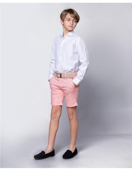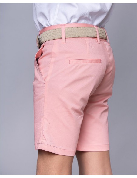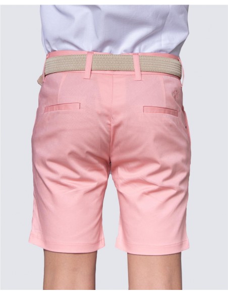Bermuda básica de niño confeccionada en tejido estructura. Presenta dos bolsillos laterales y un bolsillo trasero. Personalizada con logo Spagnolo de banderas bordado al tono en la parte trasera.