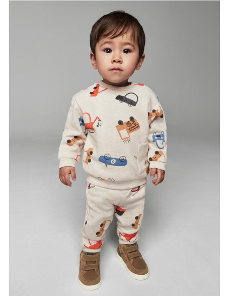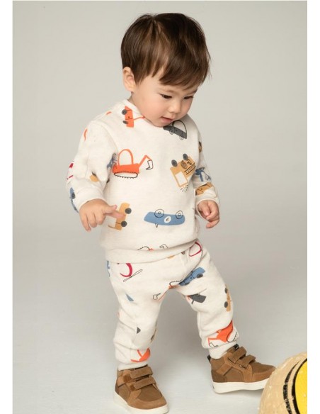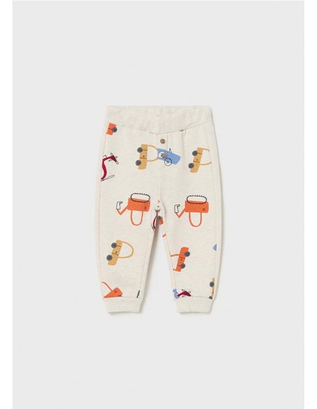 Pantalón largo deportivo para bebé de gran confort. Cinturilla elástica. Goma elástica regulable con botones en el interior de la cinturilla para mayor ajuste. Cálido tejido de felpa gruesa (felpa perchada), perfecta para los meses fríos. Rodilleras reforzadas en el interior para evitar el desgaste en la zona y ofrecer mayor resistencia y durabilidad. Bajo elástico para un mejor ajuste. Diseño estampado.