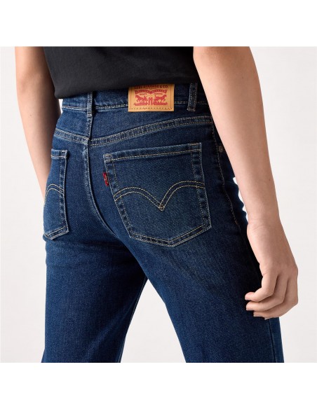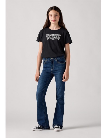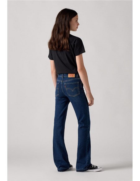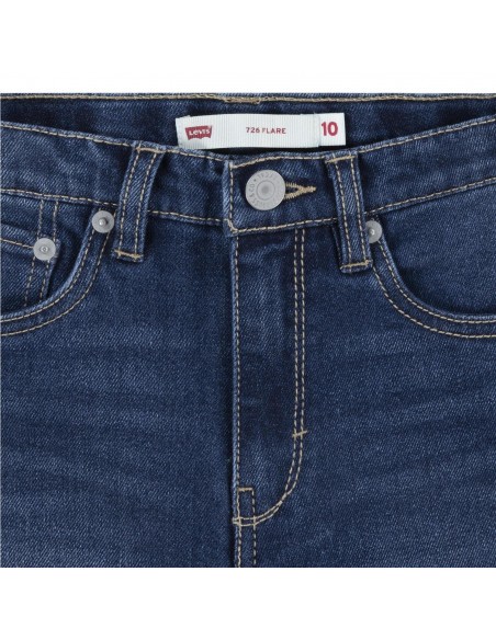 Pantalón largo vaquero, 5 bolsillos corte flare, ajustado en cadera, baja pegado a la pierna y ligeramente abierto en el bajo del pantalón, cierre con botón y cremallera y etiqueta roja cde la marca en el bolsillo trasero derecho.