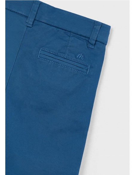 Pantalón de tipo bermuda para niño. Cierre con un único botón. Goma elástica regulable con botones en el interior de la cinturilla para mayor ajuste. Suave tejido de algodón elástico. Bolsillos funcionales en la parte delantera. Bolsillo trasero funcional.