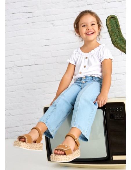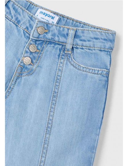 Pantalón para niña. Cierre con botones. Goma elástica regulable con botones en el interior de la cinturilla para mayor ajuste. Tejido vaquero cómodo y combinable para los looks diarios. Diseño con múltiples bolsillos.