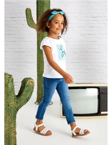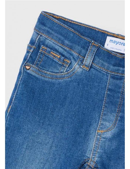 Pantalón largo para niña de corte ajustado (skinny fit), perteneciente a nuestra línea más actual. Goma elástica regulable con botones en el interior de la cinturilla para mayor ajuste. Tejido vaquero cómodo y combinable para los looks diarios. Diseño con múltiples bolsillos. Elementos de adorno: bordado.