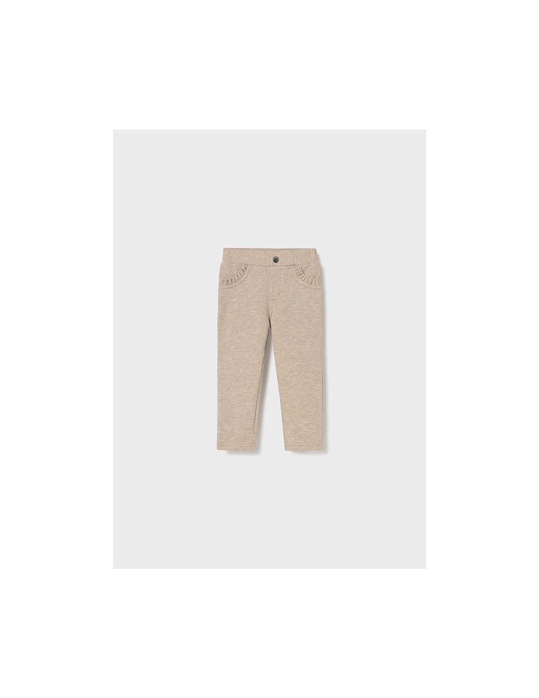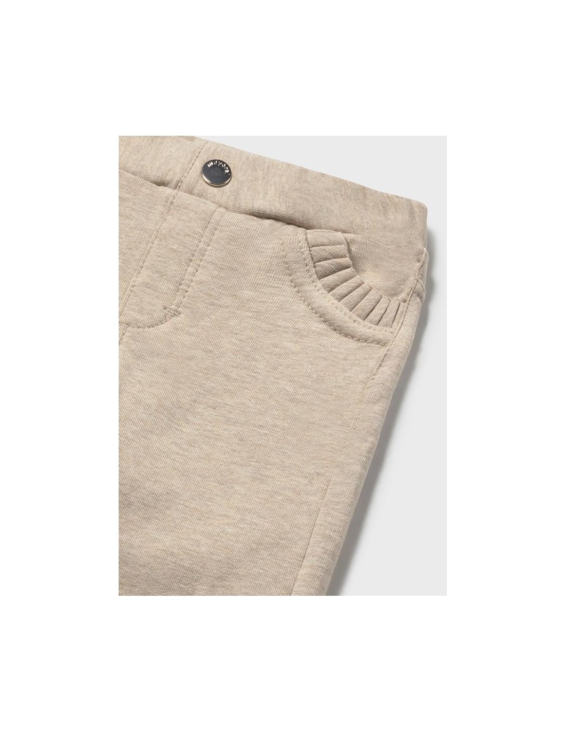 Pantalón para bebé. Cinturilla elástica. Cálido tejido de felpa gruesa (felpa perchada), perfecta para los meses fríos. Diseño con bolsillos simulados en el delantero y funcionales en la parte trasera. Elementos de adorno: volantes decorativos. Modelo perteneciente a nuestra colección Mayoral Basic, una prenda esencial en su armario para completar cualquier look.