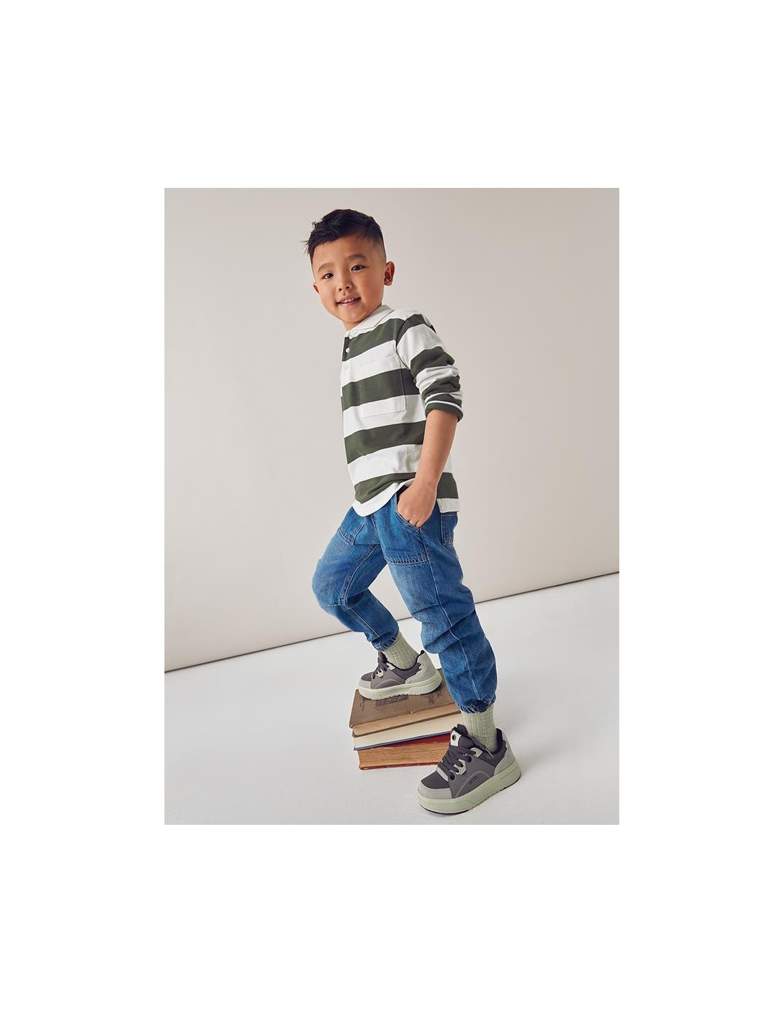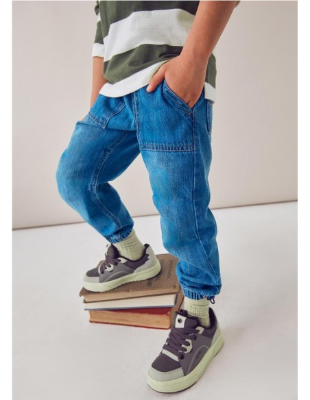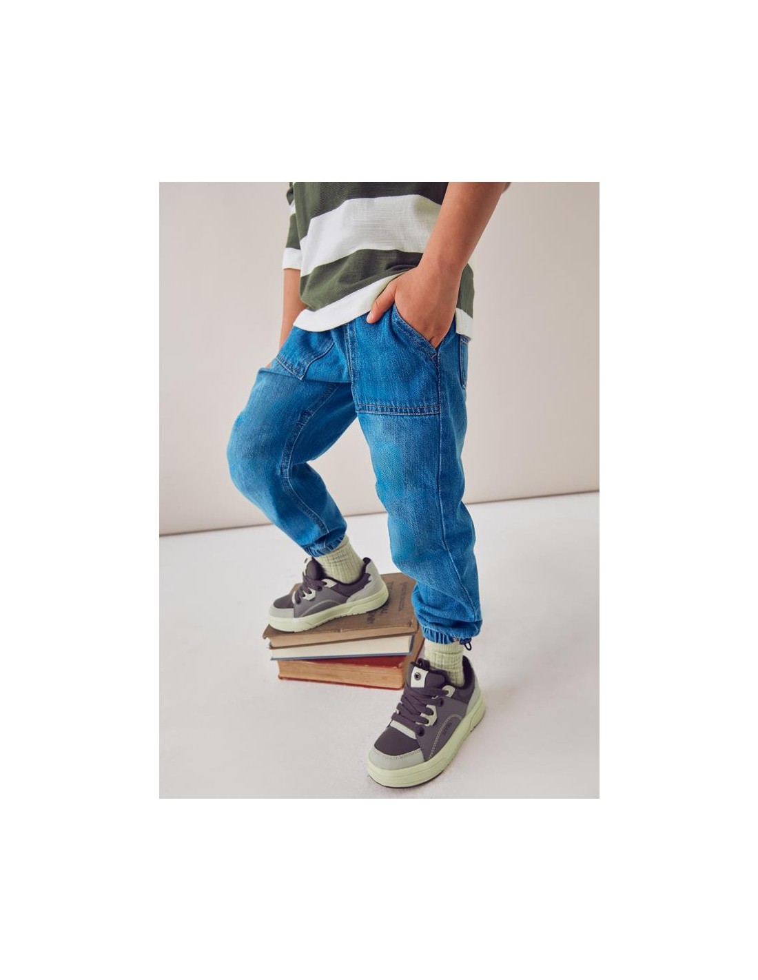 Pantalón parachute de corte amplio con bajo ajustable. Estilo relajado y cómodo. Cinturilla elástica. Moderno tejido denim con efecto lavado y acabado desgastado. Bajo elástico para un mejor ajuste. Diseño con múltiples bolsillos.