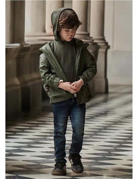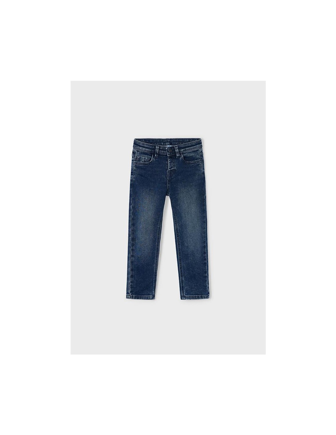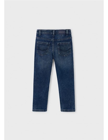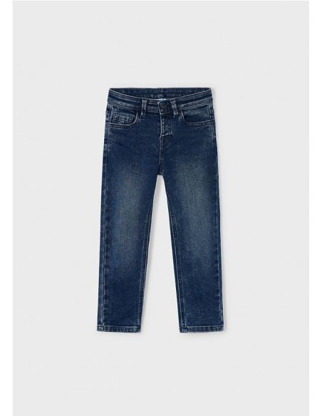 Pantalón largo para niño de corte ajustado (Slim fit). Cierre con cremallera y botón. Goma elástica regulable con botones en el interior de la cinturilla para mayor ajuste. Tejido vaquero cómodo y combinable para los looks diarios. Diseño con múltiples bolsillos. Por motivos de seguridad, las tallas pequeñas (2-5 años) no llevarán cremallera en la bragueta, sino que será simulada.