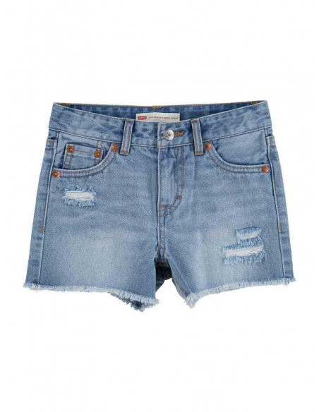 PANTALONES SHORT VAQUERO LEVIS 4536 40,00 € 4 6 12 14 16 AZUL BLANCO Añadir al carrito Short Levis. Modelo Girlfriend con cierre de botón y cremallera. Etiqueta con logo en la cintrua. Trabillas para cinturón. Bajo con dobradillo. Cinco bolsillos. Añadir al carrito