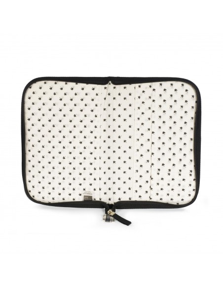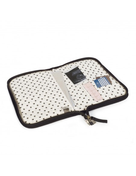 El libro de nacimiento Remy en cuadro vichy XL negro es una funcional carpeta portadocumentos de diseño a juego con la bolsa de maternidad. Un complemento indispensable para llevar contigo a todas partes que te ayudará a tener ordenada toda la documentación y papeles médicos de tu bebé (vacunas, recetas, partida de nacimiento). Esta funda portadocumentos está elaborada en tela estampada, cuenta con múltiples bolsillos plastificados distribuidos en ambos lado para organizar mejor todo.