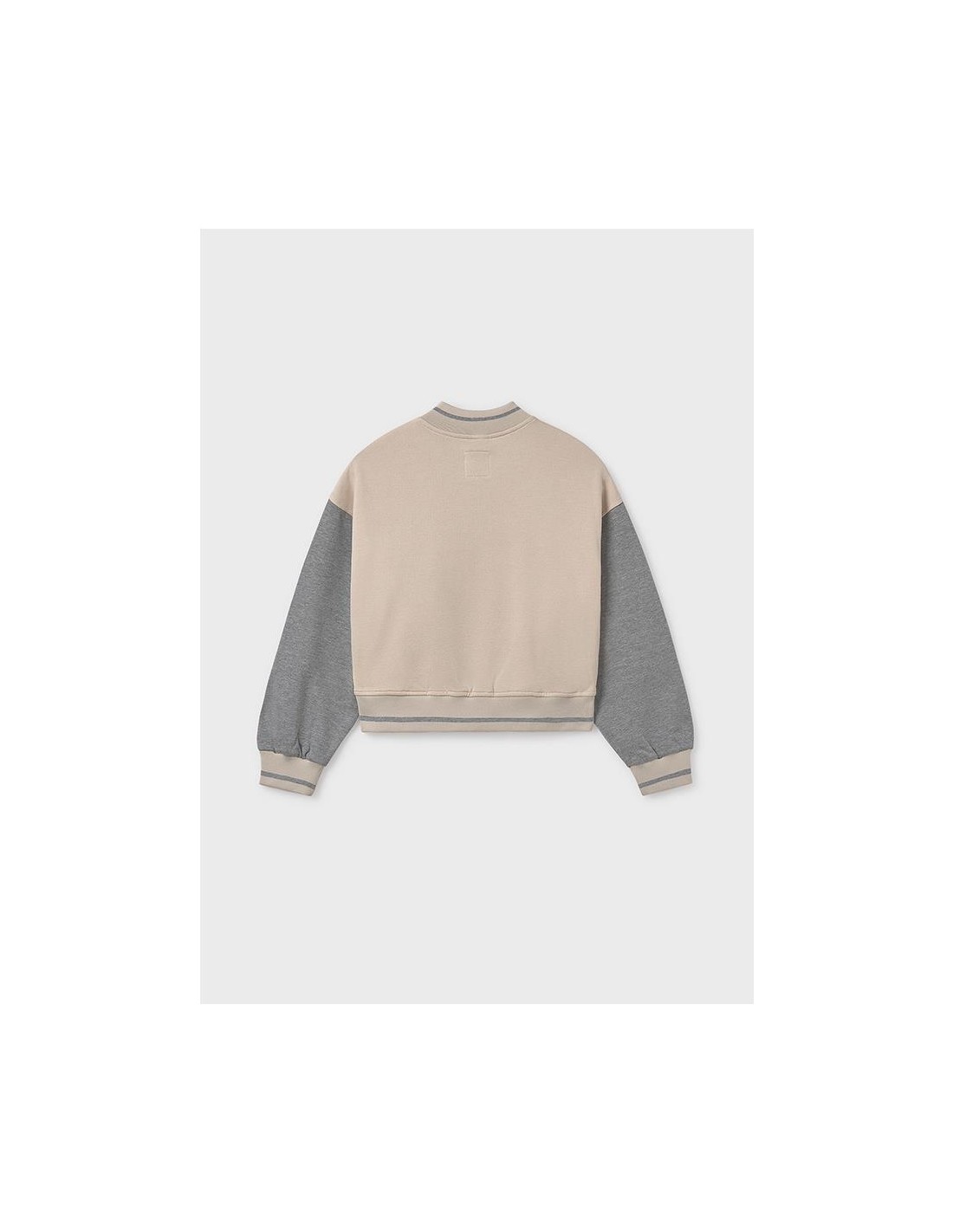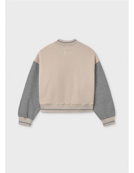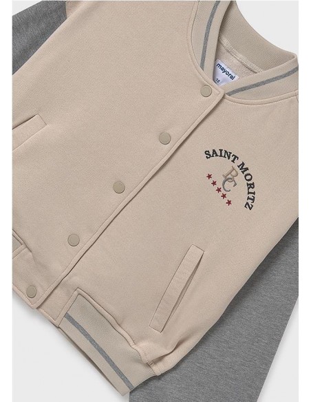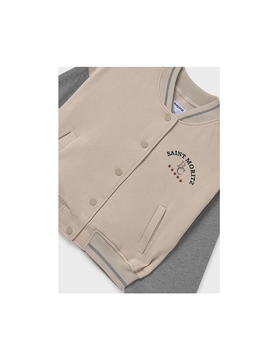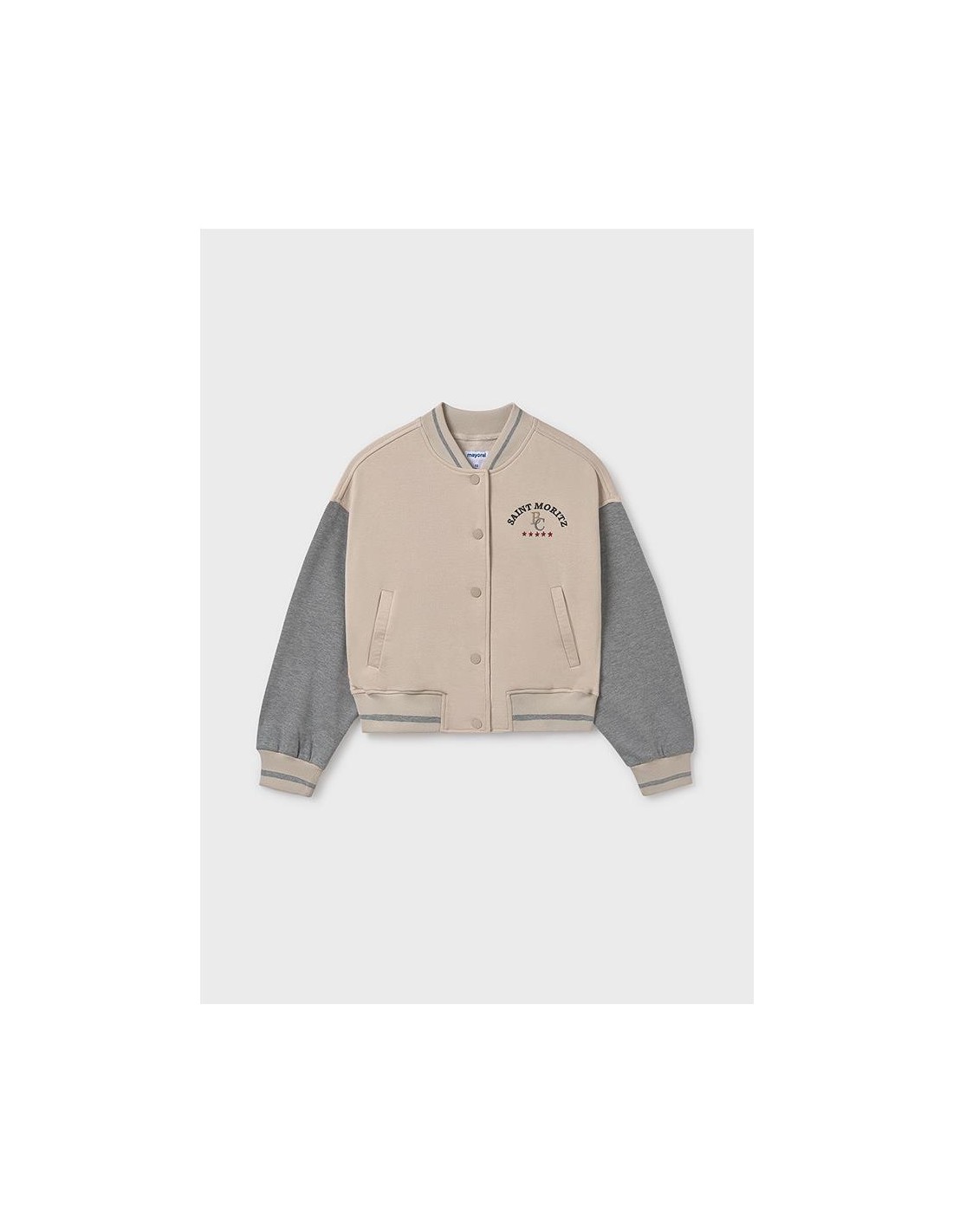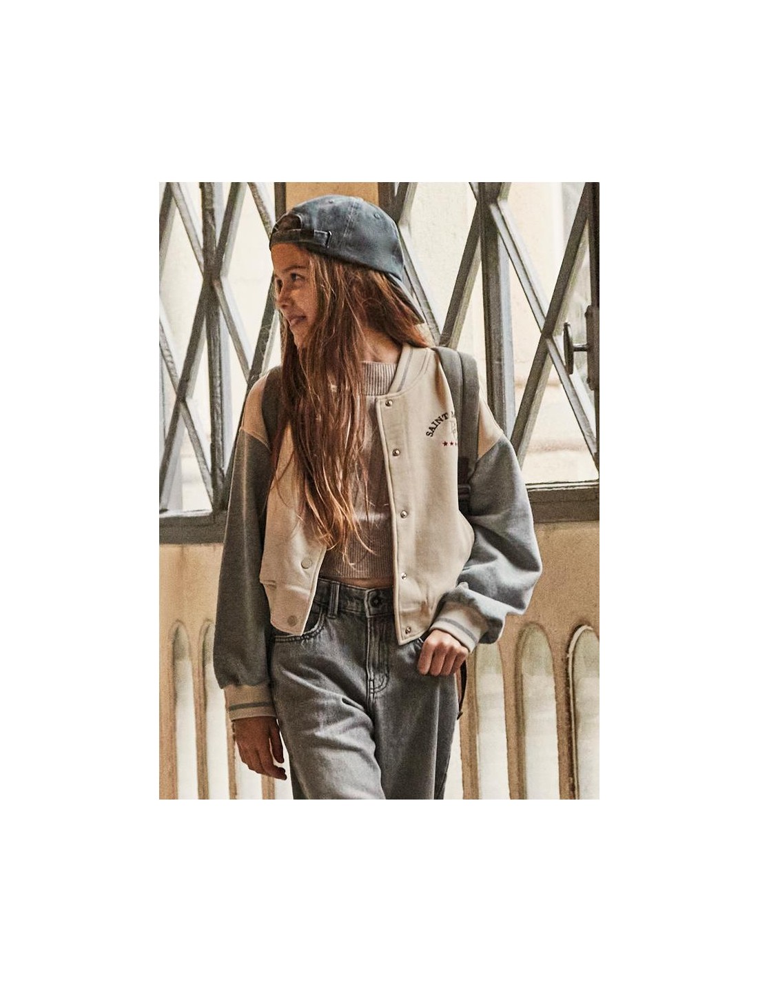 Chaqueta de líneas relajadas para chica. Cuello bomber. Cierre con botones a presión en la parte delantera. Bolsillos delanteros. Elementos de adorno: bordado.