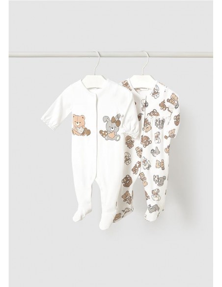 RANITAS Y PELELES SET 2 PIJAMAS LARGOS MAYORAL MAYORAL 1750 37,99 € 0-1 1-2 2-4 ROSA BEBE Añadir al carrito Set 2 pijamas largos de Newborn by Mayoral. Cuello redondo, uno liso uno rayas y con apertura delantera con broches. Añadir al carrito