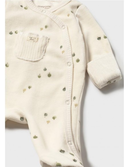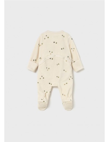 Pelele de manga larga para recién nacido. Cierre con botones a presión en la parte posterior. Cuello cruzado y abertura lateral completa que cierra con botones a presión. Cálido tejido de algodón con tacto suave y aterciopelado.