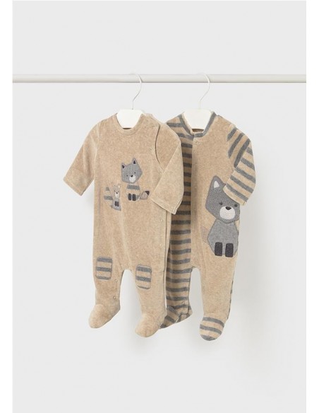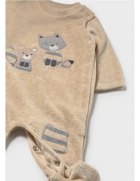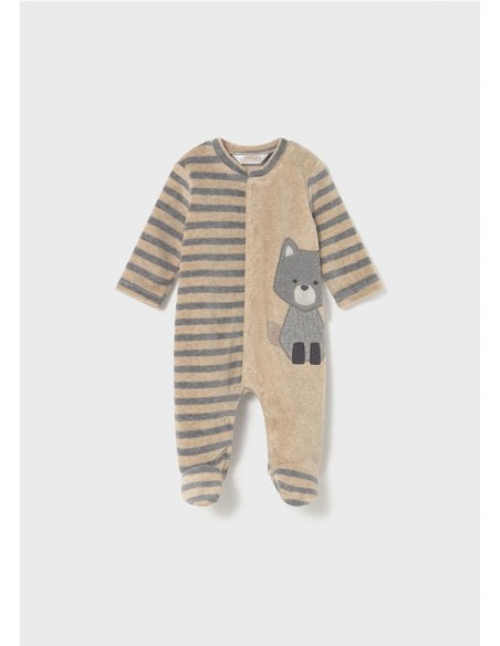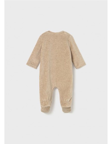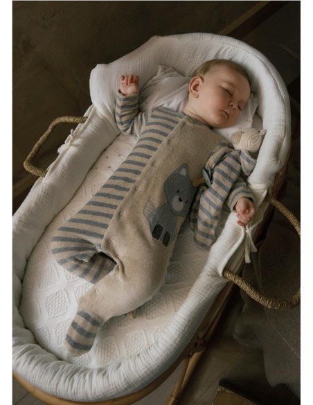 Pijama de manga larga para recién nacido. Cuello redondo. Cierre con botones a presión en la parte delantera. Botones a presión en la entrepierna para facilitar la puesta de la prenda. Cálido tejido de algodón con tacto suave y aterciopelado. Elementos de adorno: bordados. Las tallas mayores de este modelo (12 y 18 meses) presentan una suela antideslizante.Cuello cruzado y abertura lateral completa que cierra con botones a presión.