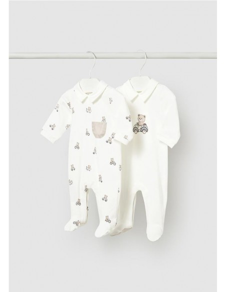 RANITAS Y PELELES SET 2 PIJAMAS LARGOS MAYORAL MAYORAL 1750 37,99 € 0-1 2-4 ROSA BEBE Añadir al carrito Set 2 pijamas largos de Newborn by Mayoral. Cuello redondo, uno liso uno rayas y con apertura delantera con broches. Añadir al carrito