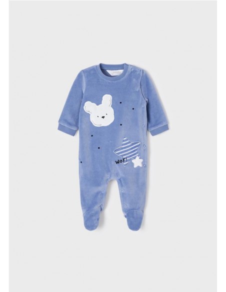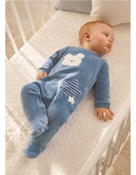 Pijamas manga larga para recién nacido,con cierre lateral con botones a presión. Cierre con botones a presión en la entrepierna para facilitar la puesta de la prenda. Diseño liso. Las tallas mayores de este modelo (12 y 18 meses) presentan una suela antideslizante.