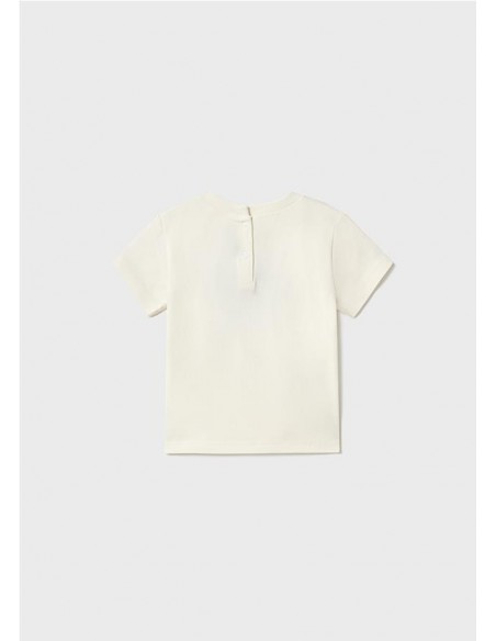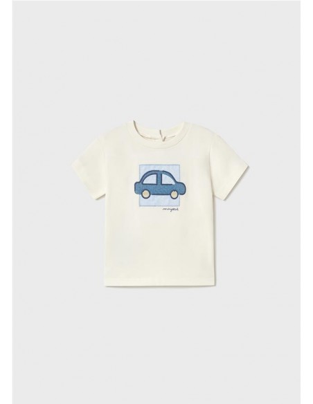 Camiseta de manga corta para bebé. Cuello redondo. Cierre con botones a presión en la parte posterior. Suave tejido de algodón elástico. Elementos de adorno: detalles de croché. Estampado con motivos del mundo del motor.