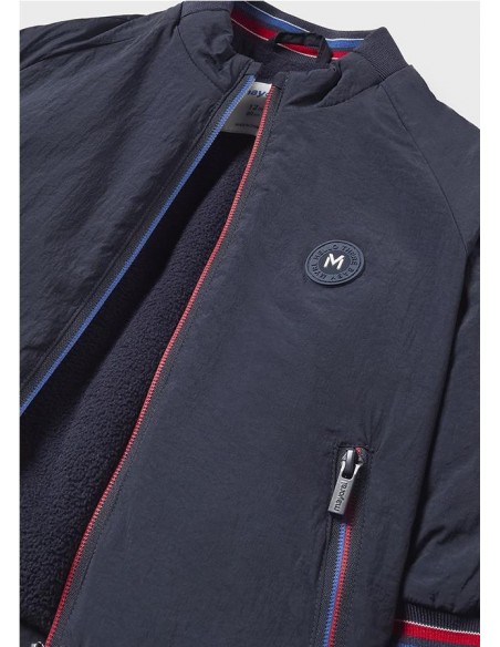 Cazadora de manga larga para bebé con puños elásticos a contraste. Cierre central delantero con cremallera. Interior de forro polar. Bolsillos con cremalleras.