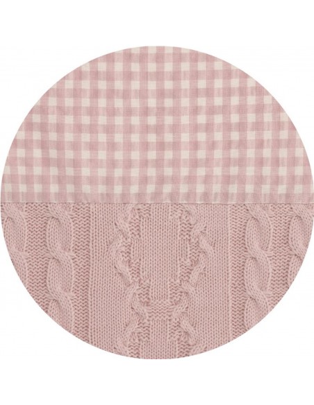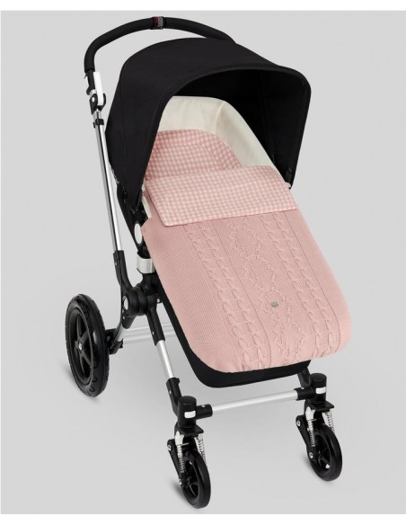 Colcha ajustable para capazos de bebé confeccionada en punto ochos combinado con tejido seersuker de cuadritos en el embozo. Incluye almohada para la cabeza del bebé. Lleva un elástico en la parte inferior y se adapta a casi todos los capazos del mercado.