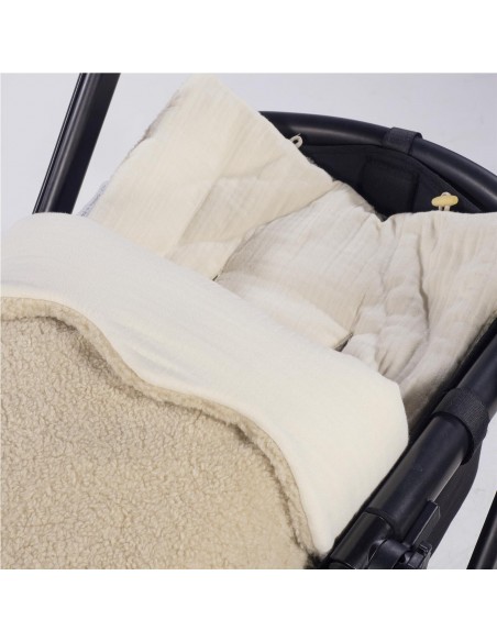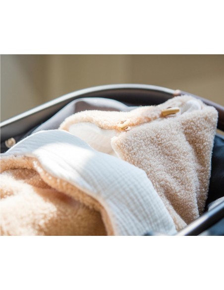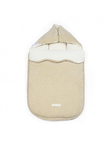El saco cuco Paddington Pasito a Pasito es un saco de dormir para bebé elaborado en borreguito beige y bambula muy suave. Es un accesorio básico 3 en 1 que sirve para utilizarlo en casa para cubrir el portabebé Grupo 0 y también le va muy bien como cubre capazo. Trasera con material anti-sudoración que evita la sudoración excesiva del bebe y protege la silla haciendo el paseo más confortable. Es totalmente universal porque dispone de varias aperturas (ojales) y ajustes necesarios para adaptarla.