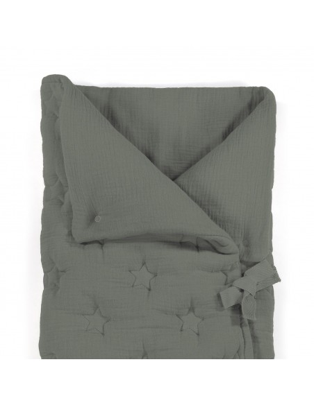 Saco arrullo o saco manta Caetana Stone con estrellas bordadas verde. Está fabricado con una suave muselina 100% algodón. Ideal para los primeros dias del bebé. Es perfecto para los primeros paseos en el capazo. Se convierte en una manta para la cuna. Practico cierre tipo sobre con velcros y cierre con cremallera en la parte inferior en los pies para que el bebé esté abrigado. Gran calidad y mucho estilo. Fabricado en materiales resistentes y de fácil limpieza a mano o a máquina a 30 °C. Walking