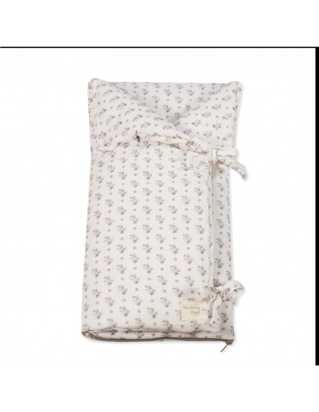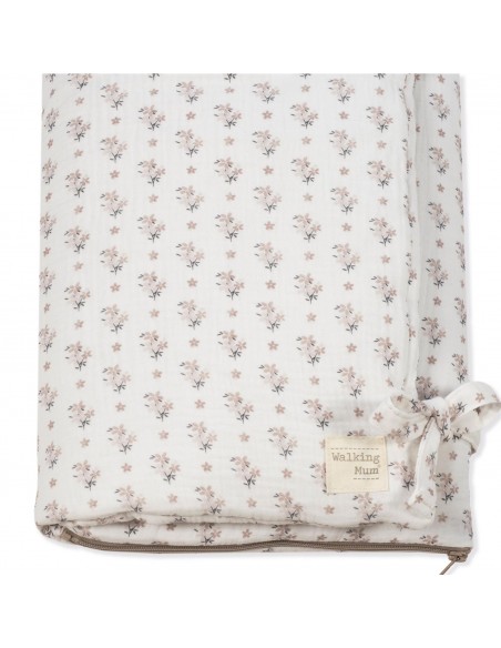 Saco arrullo o saco manta Botton con estampado floral. Está fabricado con una suave muselina 100% algodón. Ideal para los primeros dias del bebé. Es perfecto para los primeros paseos en el capazo. Se convierte en una manta para la cuna. Practico cierre tipo sobre con lazos y cierre con cremallera en la parte inferior en los pies para que el bebé esté abrigado. Gran calidad y mucho estilo. Fabricado en materiales resistentes y de fácil limpieza a mano o a máquina a 30 °C