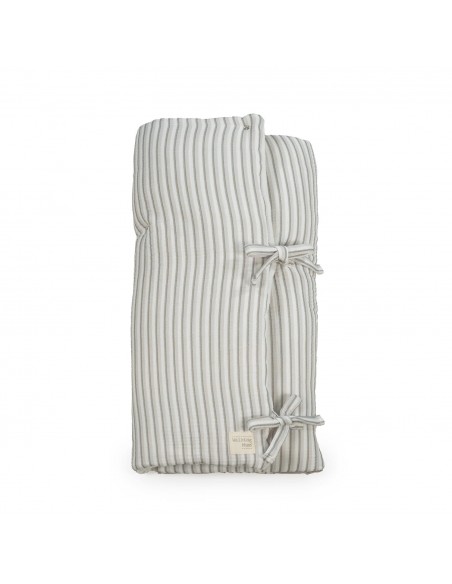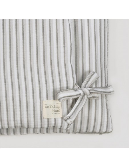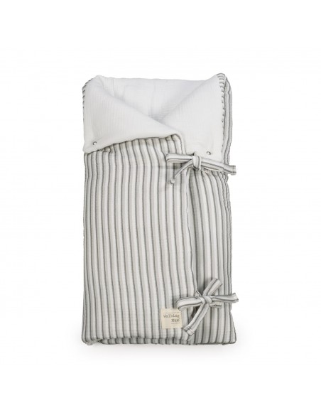 Saco arrullo o saco manta Botton con estampado de rayas. Está fabricado con una suave muselina 100% algodón. Ideal para los primeros dias del bebé. Es perfecto para los primeros paseos en el capazo. Se convierte en una manta para la cuna. Practico cierre tipo sobre con lazos y cierre con cremallera en la parte inferior en los pies para que el bebé esté abrigado. Gran calidad y mucho estilo. Fabricado en materiales resistentes y de fácil limpieza a mano o a máquina a 30 °C.