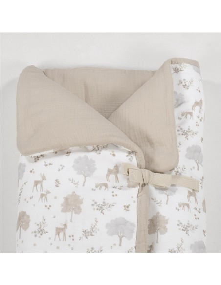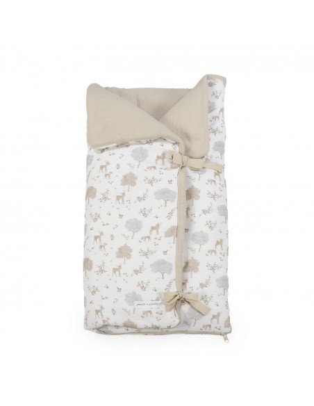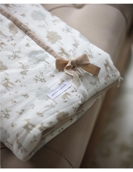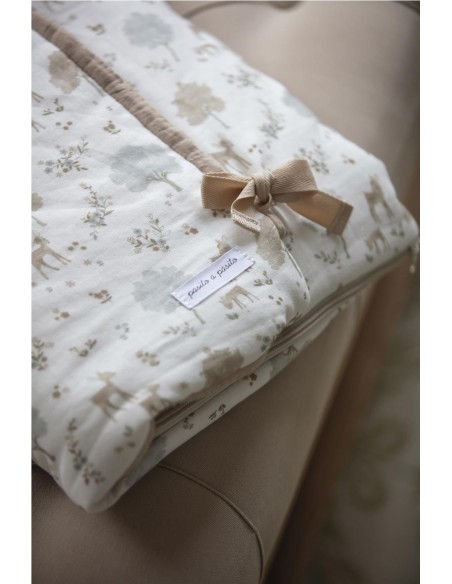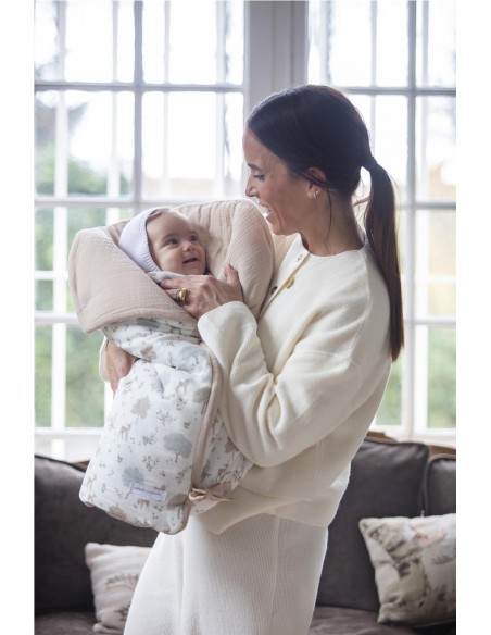 Saco arrullo o saco manta Nara de Pasito a pasito. Está fabricado con una suave muselina 100% algodón. Ideal para los primeros dias del bebé. Es perfecto para los primeros paseos en el capazo. Se convierte en una manta para la cuna. Practico cierre tipo sobre con lazos y cierre con cremallera en la parte inferior en los pies para que el bebé esté abrigado. Gran calidad y mucho estilo. El arrullo está fabricado conforme a las más exigentes normativas europeas.