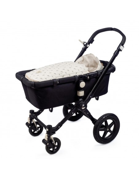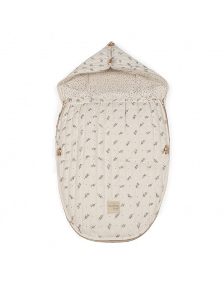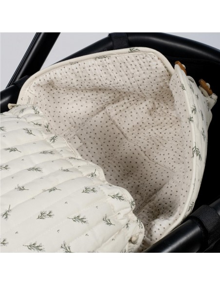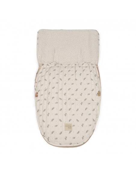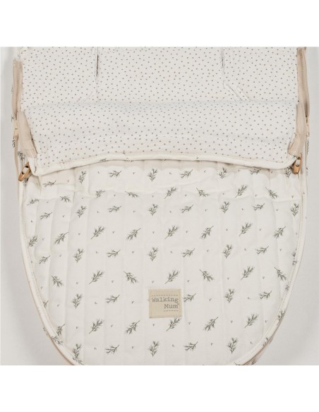 Funda con saco Mimosa Verde. Está fabricado con una suave muselina en el interior 100% algodón. Es ideal para cuco y portabebé. Dispone de varias aperturas (ojales) y ajustes para adaptarla a la mayoría de los Portabebés. Con este saco tu bebé estará cómodo durante los meses de primavera y de otoño. Trasera con material anti-sudoración que evita la sudoración excesiva del bebe y protege la silla haciendo el paseo más confortable. Puedes moverlo del carro a la cuna sin incomodarlo ni perturbar su