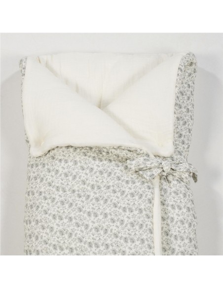 Saco arrullo o saco manta Gala Mint con estampado floral. Está fabricado con una suave muselina 100% algodón. Ideal para los primeros dias del bebé. Es perfecto para los primeros paseos en el capazo. Se convierte en una manta para la cuna. Practico cierre tipo sobre con lazos y cierre con cremallera en la parte inferior en los pies para que el bebé esté abrigado. Gran calidad y mucho estilo. Fabricado en materiales resistentes y de fácil limpieza a mano o a máquina a 30 °C.