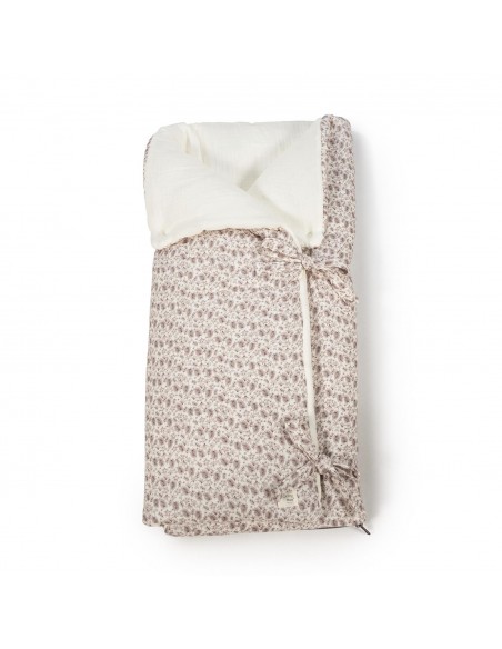 Saco arrullo o saco manta Gala Cerise con estampado floral. Está fabricado con una suave muselina 100% algodón. Ideal para los primeros dias del bebé. Es perfecto para los primeros paseos en el capazo. Se convierte en una manta para la cuna. Practico cierre tipo sobre con lazos y cierre con cremallera en la parte inferior en los pies para que el bebé esté abrigado. Gran calidad y mucho estilo. Fabricado en materiales resistentes y de fácil limpieza a mano o a máquina a 30 °C.