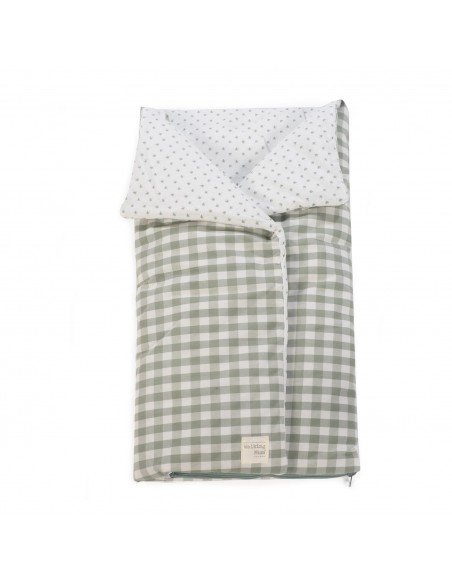 Saco arrullo o saco manta Remy en cuadro vichy XL verde ideal para los primeros dias del bebé. Es perfecto para los primeros paseos en el capazo. Se convierte en una manta para la cuna. Practico cierre tipo sobre con velcros y cierre con cremallera en la parte inferior en los pies para que el bebé esté abrigado. Gran calidad y mucho estilo. Fabricado en materiales resistentes y de fácil limpieza a mano o a máquina a 30 °C.