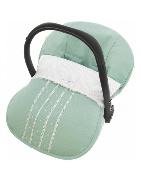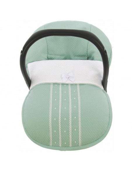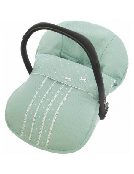Saco para capazo Grupo 0 (válido para la gran mayoría de las sillitas del mercado) con capota capota a juego. Fabricado en piqué jackard. Fabricado con Guata Fina. Forro de alta calidad a juego del color del saco (en parte de los colores del artículo) Ojales verticales especiales".