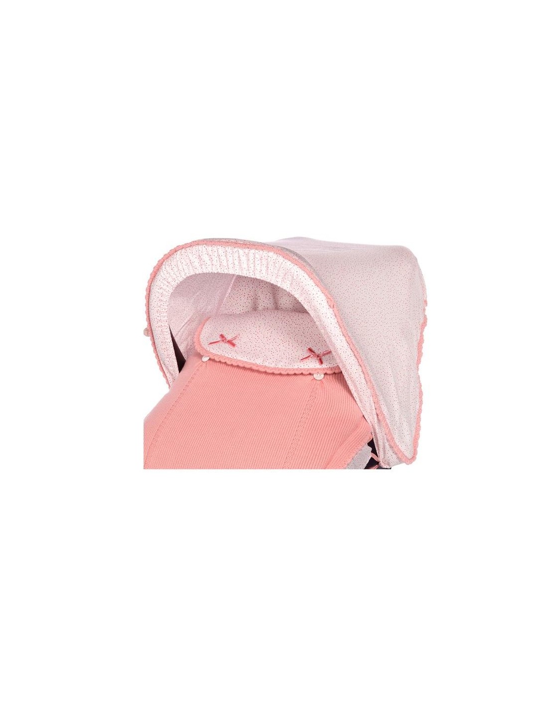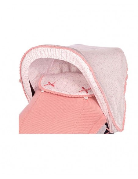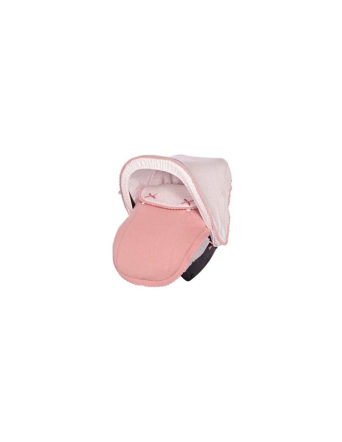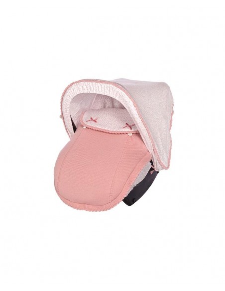 Saco grupo 0 con capota Salín, capota y trasera del saco en tela estampada multiflor y cubre portabebé en punto con embozo en la misma tela estampada y relleno extraíble.