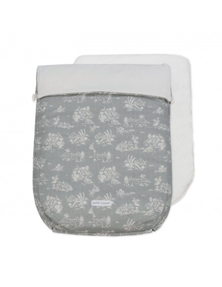 Funda Toile de Jouy Forest de Pasito a pasito en tejido estampado y bambula muy suave ideal para cubrir la silla de paseo provista de saco. Está diseñado en el respaldar con una capa de tejido en material transpirable que aísla la humedad y evita la sudoración excesiva del bebe haciendo el paseo más confortable. Relleno de fibra hueca extraíble. Reposapiés plastificado para facilitar la limpieza. Dispone de varias aperturas (ojales) y ajustes para adaptarla a la mayoría de la sillitas de paseo.