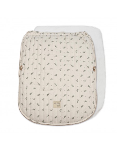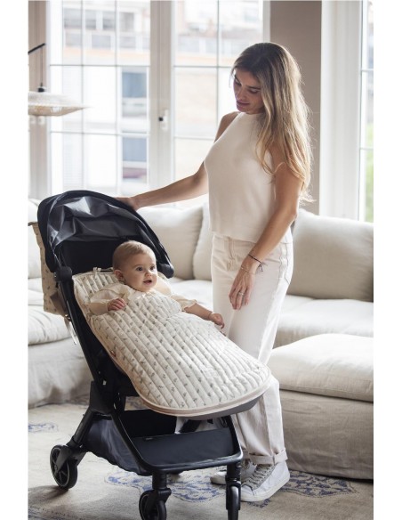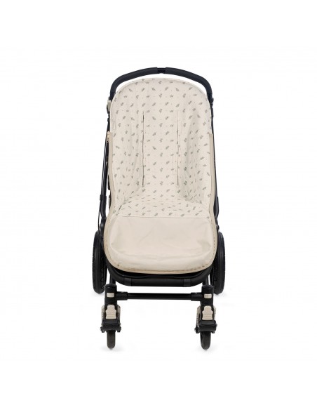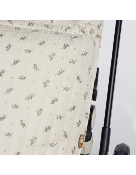 La funda de silla para bebé Mimosa Verde está fabricado con un tejido de 100% algodón. Es la funda ideal para cubrir la base de la silla de paseo y viene provista de saco para arropar a tu bebé. Con este saco tu bebé estará cómodo durante los meses de primavera y de otoño. Trasera con material anti-sudoración que evita la sudoración excesiva del bebe. Relleno extraíble. Su esquema dispone de varias aperturas (ojales) y ajustes con los que se te hará más fácil adaptarla a la mayoría de los coches