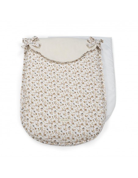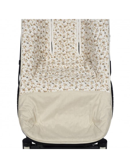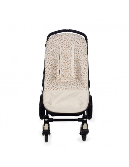 Funda Somerset de Pasito a pasito en tejido estampado de flores y bambula muy suave ideal para cubrir la silla de paseo provista de saco. Está diseñado en el respaldar con una capa de tejido en material transpirable que aísla la humedad y evita la sudoración excesiva del bebe haciendo el paseo más confortable. Relleno de fibra hueca extraíble. Reposapiés de poléster para facilitar la limpieza. Dispone de varias aperturas (ojales) y ajustes para adaptarla a la mayoría de la sillitas de paseo.