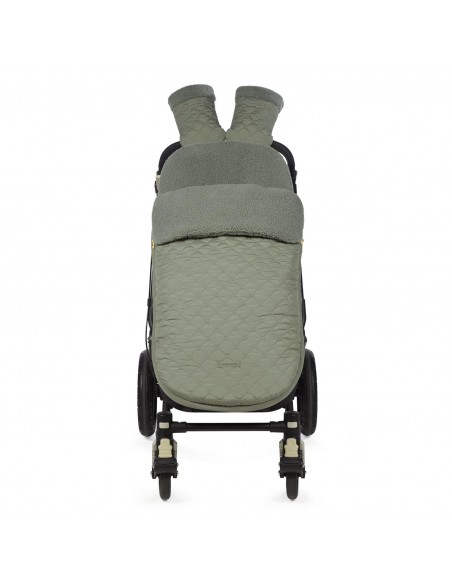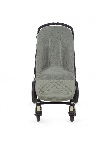 EL saco Paddington verde de Pasito a pasito elaborado en un resistente material acolchado y borreguito muy suave en el interior es ideal para cubrir la silla de paseo. Está diseñado en el respaldar con una capa de tejido en material transpirable que aísla la humedad y evita la sudoración excesiva del bebe haciendo el paseo más confortable. Reposapiés en poliéster para facilitar la limpieza. Dispone de varias aperturas (ojales) y ajustes para adaptarla a la mayoría de la sillitas de paseo.