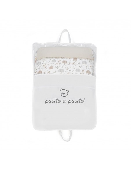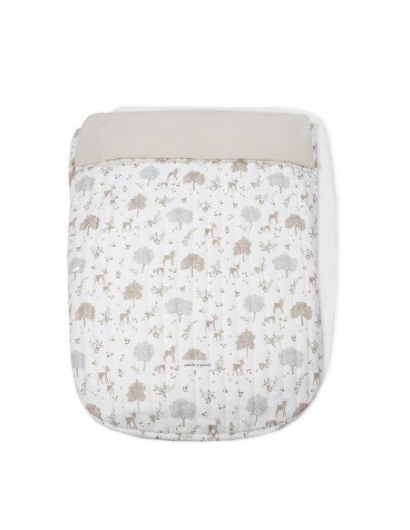 Funda Nara de Pasito a pasito en tejido de algodón y bambula muy suave ideal para cubrir la silla de paseo provista de saco. Está diseñado en el respaldar con una capa de tejido en material transpirable que aísla la humedad y evita la sudoración excesiva del bebe haciendo el paseo más confortable. Relleno de fibra hueca extraíble. Reposapiés de poliéster para facilitar la limpieza. Dispone de varias aperturas (ojales) y ajustes para adaptarla a la mayoría de la sillitas de paseo.