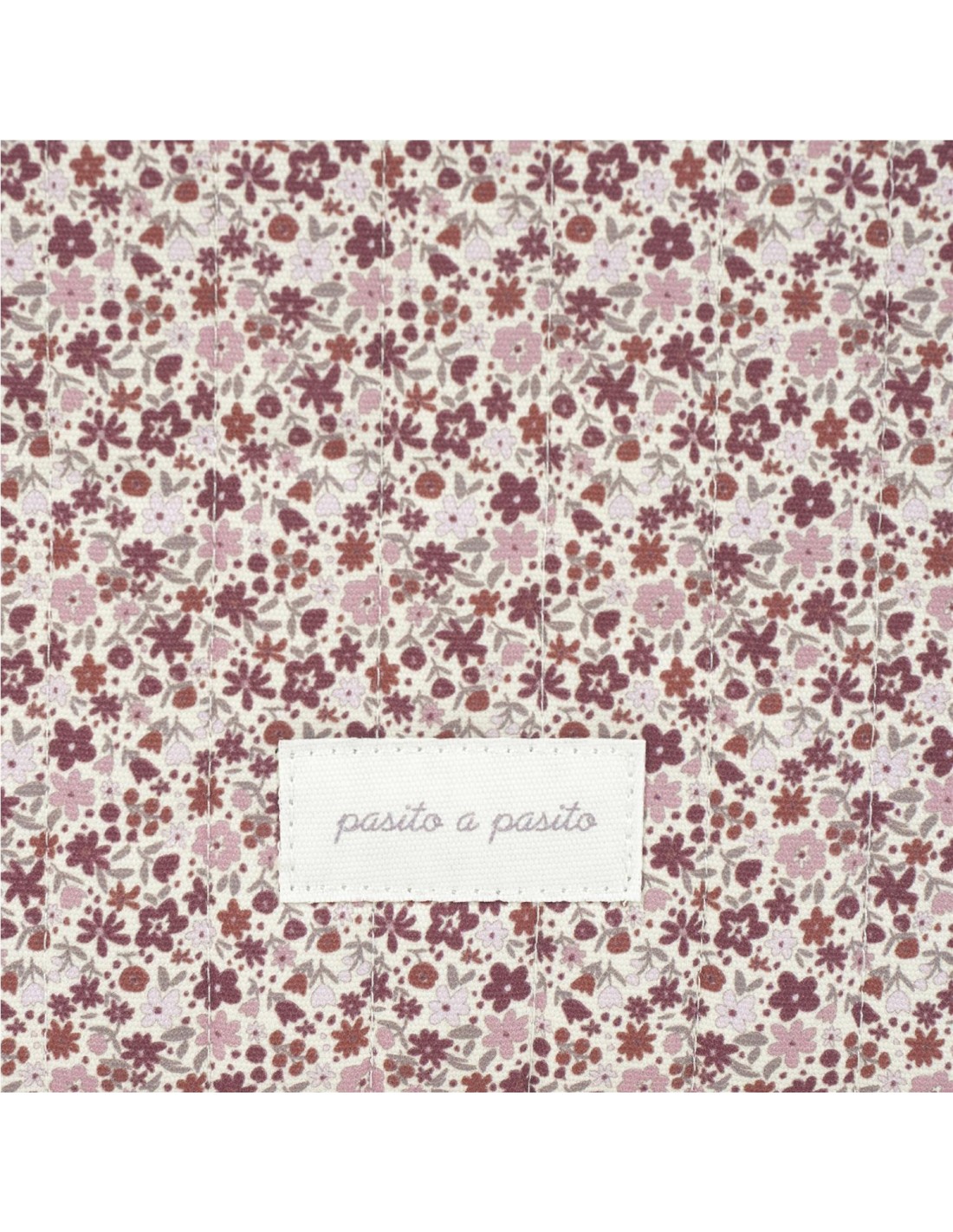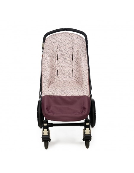 Funda Cherry Flores de Pasito a pasito en tejido de algodón 100% muy suave ideal para cubrir la silla de paseo provista de saco. Está diseñado en el respaldar con una capa de tejido en material transpirable que aísla la humedad y evita la sudoración excesiva del bebe haciendo el paseo más confortable. Relleno de fibra hueca extraíble. Reposapiés de poliéster para facilitar la limpieza. Dispone de varias aperturas (ojales) y ajustes para adaptarla a la mayoría de la sillitas de paseo.