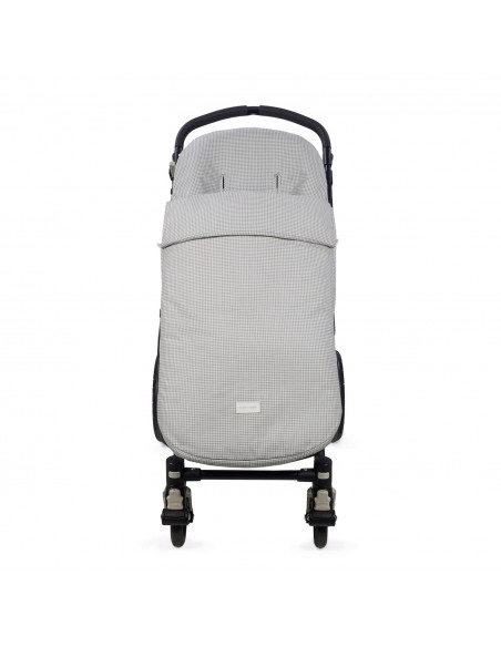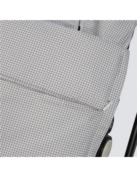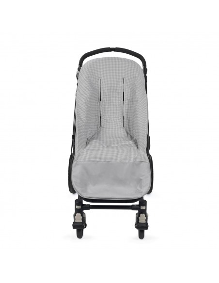 Funda Little Bloom Vichy gris de Pasito a pasito en tejido de algodón 100% muy suave ideal para cubrir la silla de paseo provista de saco. Está diseñado en el respaldar con una capa de tejido en material transpirable que aísla la humedad y evita la sudoración excesiva del bebe haciendo el paseo más confortable. Relleno de fibra hueca extraíble. Reposapiés de poliéster para facilitar la limpieza. Dispone de varias aperturas (ojales) y ajustes para adaptarla a la mayoría de la sillitas de paseo.