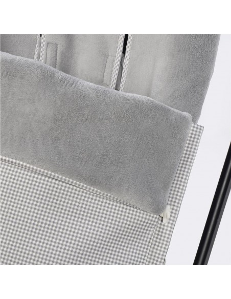 El saco de silla de invierno Little Bloom Vichy gris de Pasito a Pasito ha sido diseñado para ofrecer el máximo confort y protección durante los paseos en los días más fríos, combinando funcionalidad y un estilo delicado y atemporal. Su interior de suave velour proporciona una agradable sensación de calidez y bienestar para el bebé, mientras que el exterior en piel vegana 100% PVC waterproof protege frente al viento y la humedad.Incorpora rejilla trasera transpirable, que favorece la ventilación