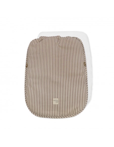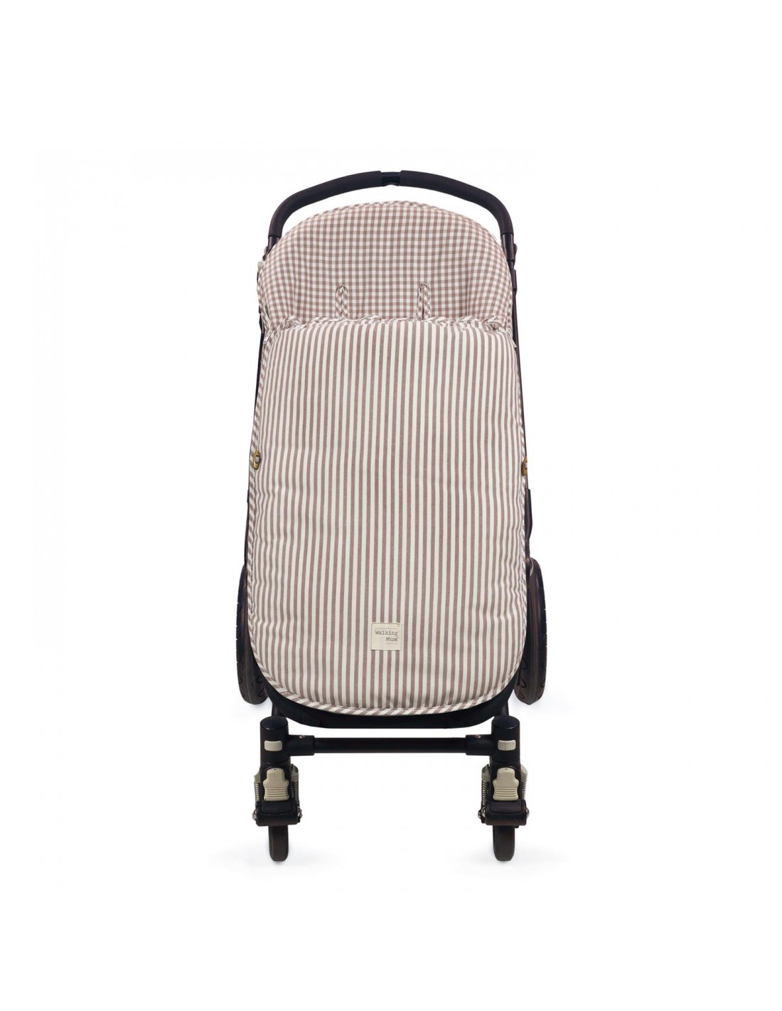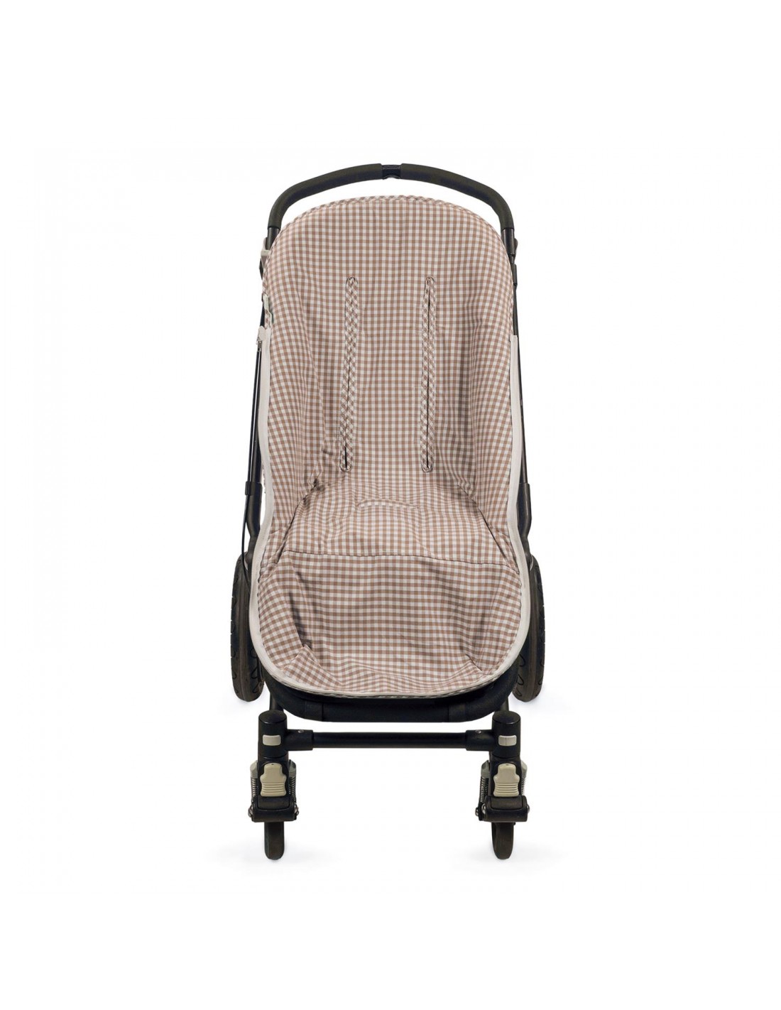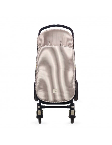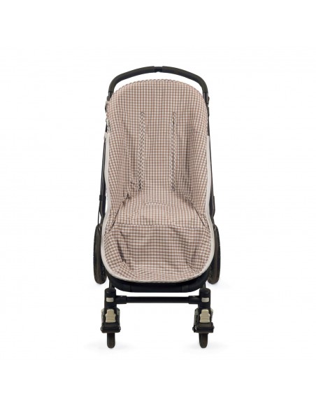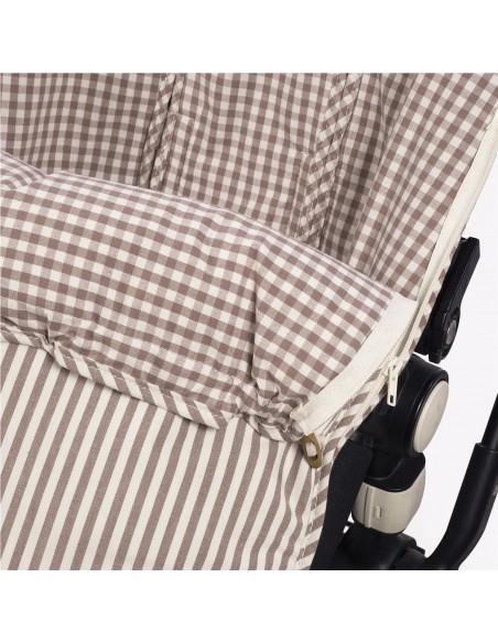 La funda de silla para bebé Praliné Vichy/Rayas Moka es la funda ideal para cubrir la base de la silla de paseo y viene provista de saco para arropar a tu bebé. Con este saco tu bebé estará cómodo durante los meses de primavera y de otoño. Trasera con material anti-sudoración que evita la sudoración excesiva del bebe. Relleno extraíble. Su esquema dispone de varias aperturas (ojales) y ajustes con los que se te hará más fácil adaptarla a la mayoría de los cochecitos.