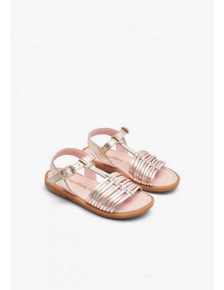 Las Sandalias Tiras Oro Multicolor combinan diseño sofisticado y materiales de alta calidad, convirtiéndolas en una opción ideal para los días más cálidos. Su empeine de piel con múltiples tiras en acabado metalizado aporta un toque elegante y moderno, perfecto para cualquier ocasión. Empeine de piel, plantilla microfibra transpirable, cierre con hebilla ajustable, suela flexible y ligera.