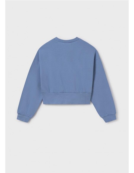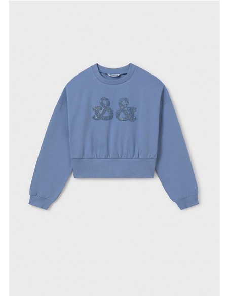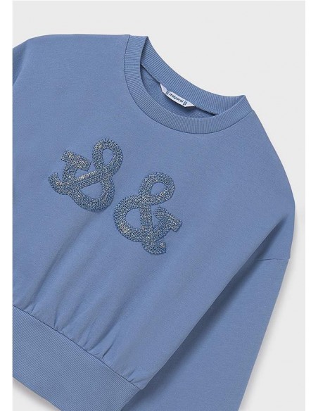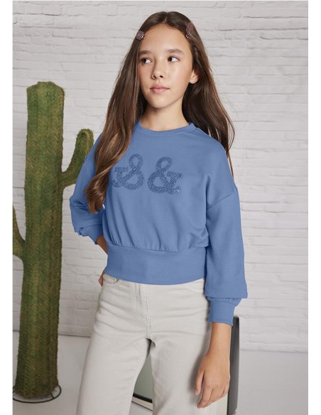 Sudadera de manga larga para chica. Cuello redondo. Bajo, puños y cuello de punto elástico para un mejor ajuste. Elementos de adorno: bordados, lentejuelas, detalle en relieve (embossed), serigrafía (print).