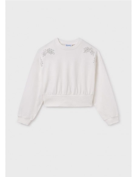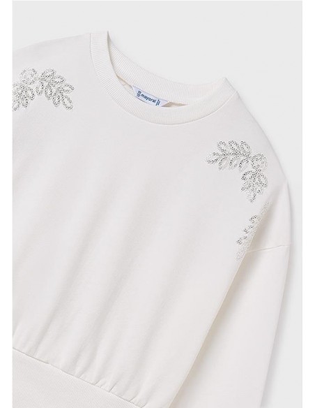 Sudadera de manga larga para chica. Cuello redondo. Bajo, puños y cuello de punto elástico para un mejor ajuste. Elementos de adorno: bordados, lentejuelas, detalle en relieve (embossed), serigrafía (print).