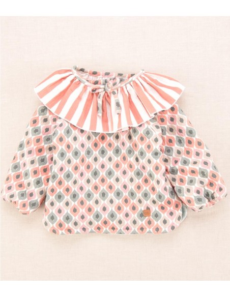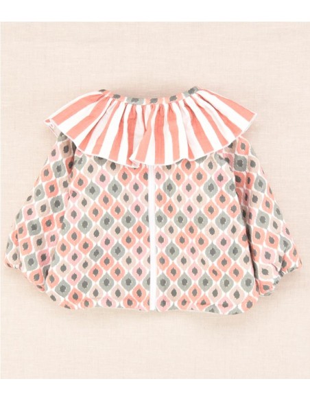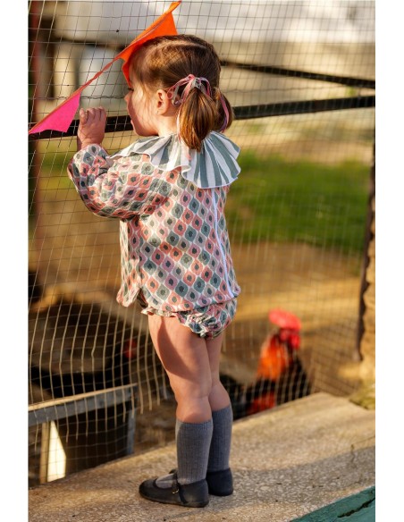 Sudadera étnica bebé con estampado multicolor, cuello redondo con botón delantero y cuello postizo de rayas, forro polar interior y cremallera en la parte trasera de total apertura para facilitar la puesta.